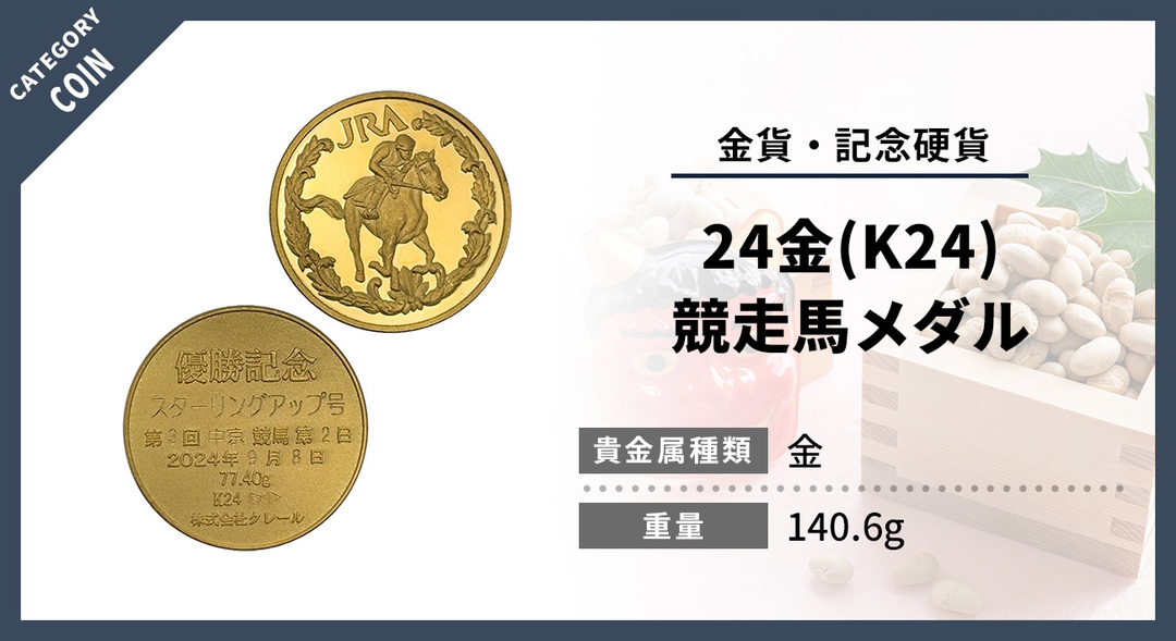 競走馬メダルのような記念性のある金製品は、