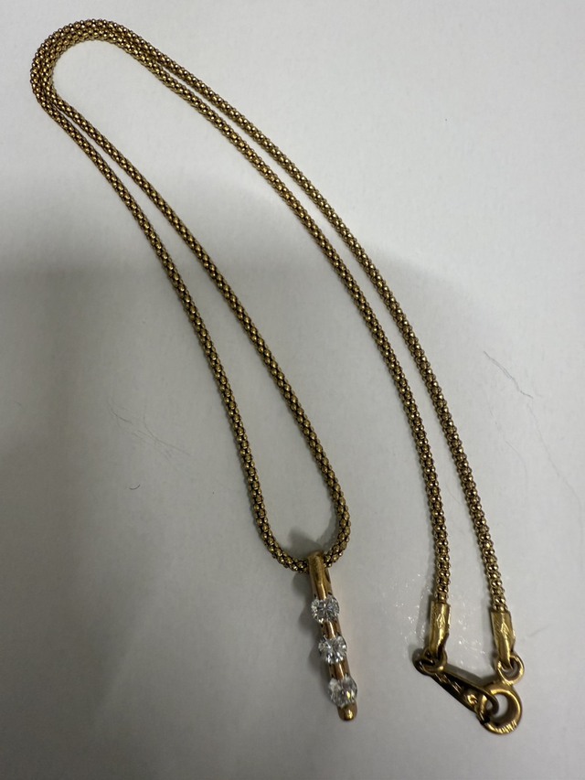 本日は、K18素材に0.37ctのダイヤがあしらわれたネックレスをお持ち込みいただきました。シンプルで身に着けやすいデザインのお品です。