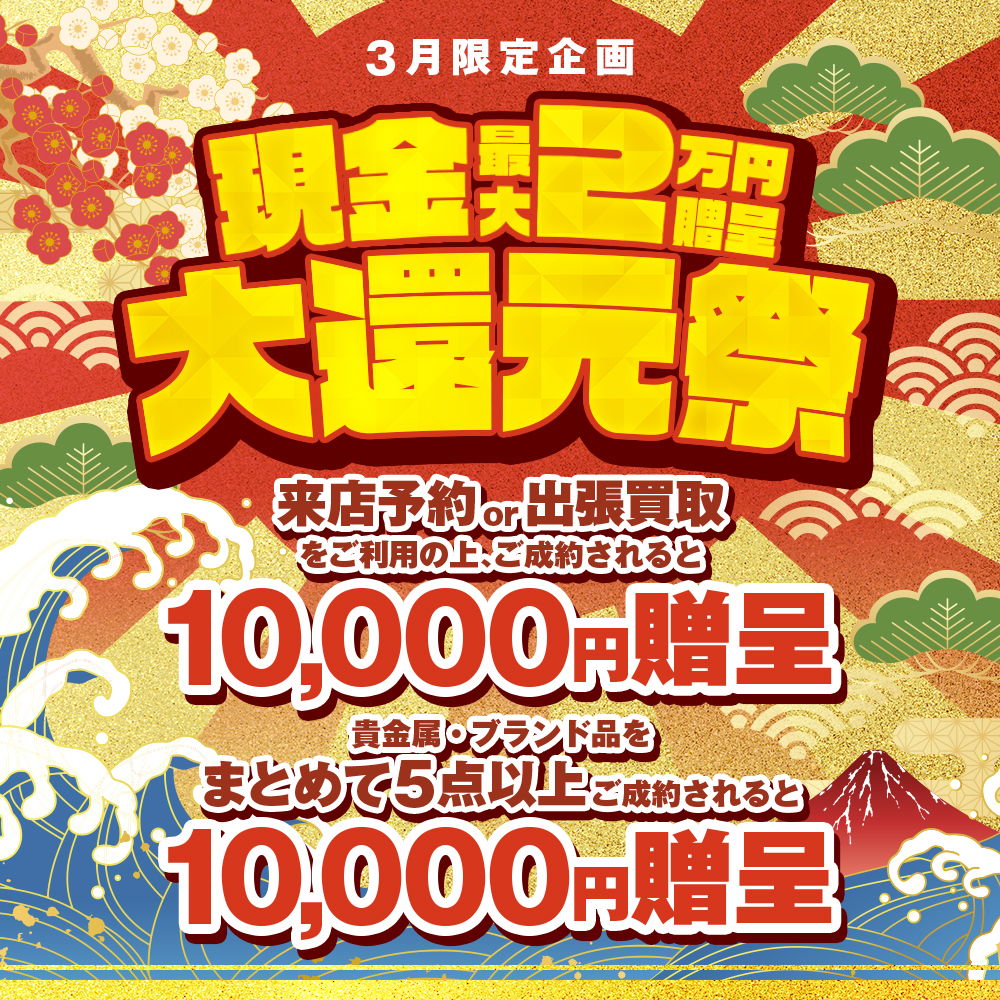 【3月限定】現金大還元祭!最大2万円キャッシュバック開催中!